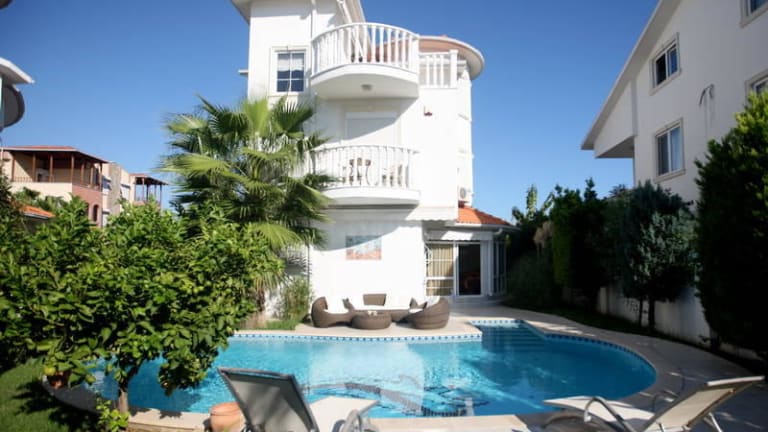 Die zauberhafte Bella Nevena Villa mit ihrem privaten Pool empfängt Sie zwischen den Ortschaften Belek und Kadriye. Die klimatisierte Villa ist modern eingerichtet und umfasst 2 großzügige Schlafzimmer mit Doppelbetten sowie 2 Badezimmer. Ein klappbares Bett und die ausziehbare Couch im Wohnzimmer bieten zwei weitere Schlafmöglichkeiten. In dem geräumigen Wohnbereich steht Ihnen eine gemütliche Sitzecke und ein Flachbild-TV zur Verfügung. Die Küche im amerikanischen Stil ist voll ausgestattet, so dass Sie problemlos Ihre Mahlzeiten zubereiten können. Ein Esstisch ist ebenfalls vorhanden. Gerne können Sie auch den möblierten Wintergarten für gemütliche Runden nutzen. Auf der Terrassen stehen hochmoderne und bequeme Gartenmöbel für Sie bereit, auf denen Sie direkt am privaten Pool entspannen können. Die Liegestühle laden zum Sonnenbaden ein.