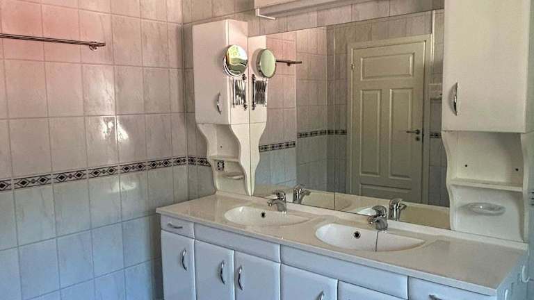Das Ferienhaus bietet Platz in drei Schlafzimmern und verfügt über ein Badezimmer. Zur Ausstattung gehören Bettwäsche, Handtücher, ein Flachbild-TV, ein Essbereich und eine voll ausgestattete Küche. Zudem gibt es eine Terrasse mit Blick auf die Berge.