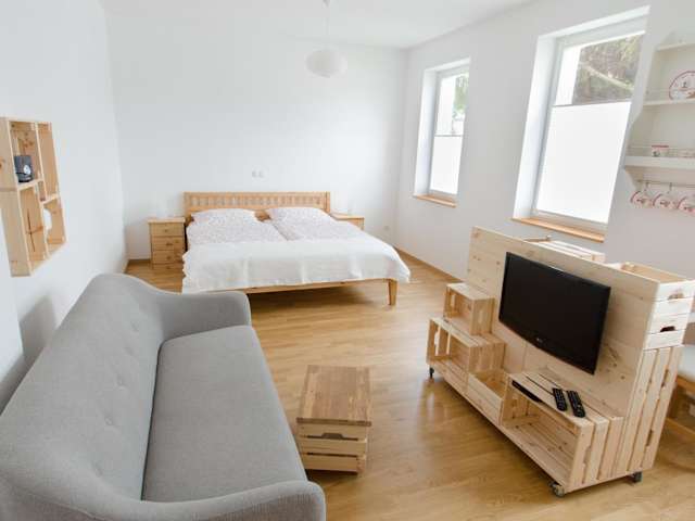 FeWo 2 Markranstädt bietet eine heimelige Ferienwohnung mit einem Schlafzimmer sowie einer Küchenzeile. Die Unterkunft ist von einem Privatparkplatz umgeben und bietet kostenloses Wifi.