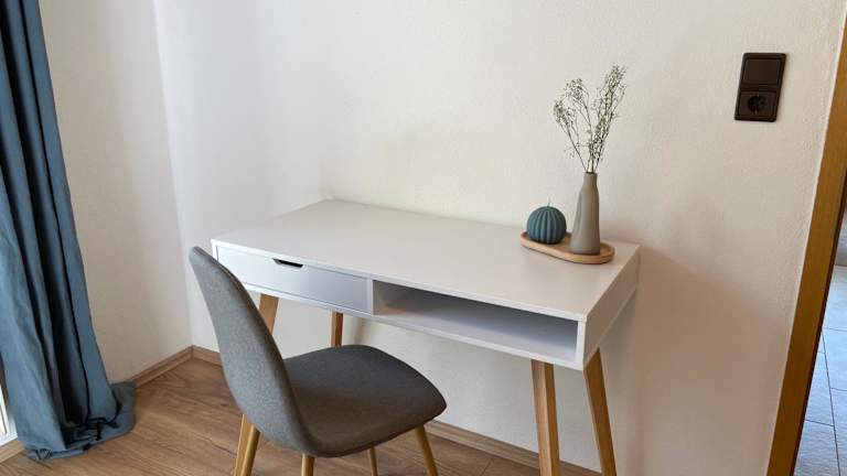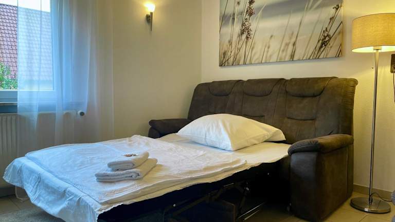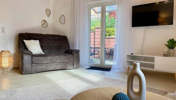 Die Wohnung verfügt über ein Schlafzimmer, ein Wohnzimmer und ein Badezimmer mit Dusche. Zur Ausstattung gehören ein Flachbild-TV sowie eine gut ausgestattete Küche mit Kühlschrank und Ofen. Handtücher und Bettwäsche werden bereitgestellt.