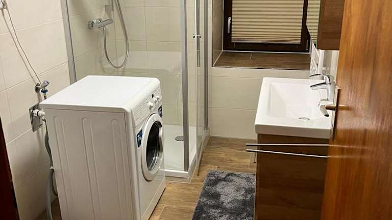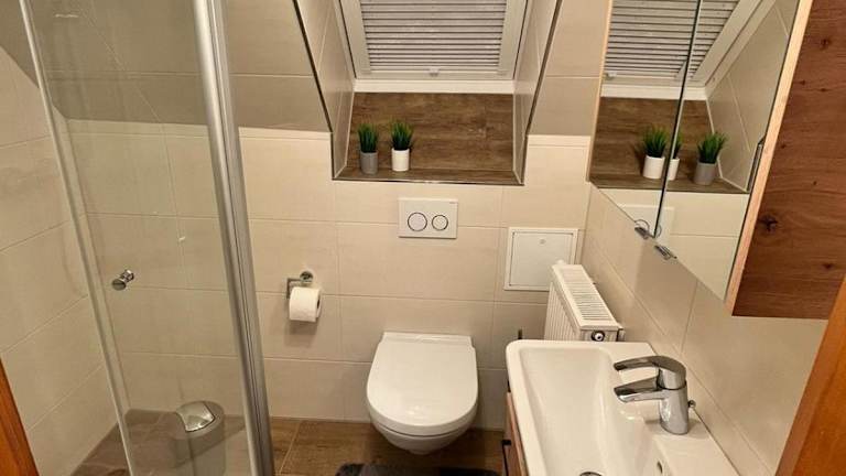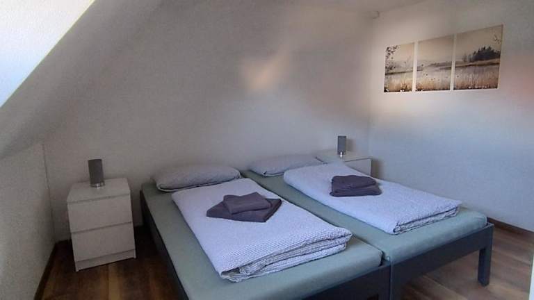 Die Ferienwohnung besteht aus 2 Schlafzimmern, einem Wohnzimmer und einer voll ausgestatteten Küchenzeile mit Kühlschrank und Kaffeemaschine. Zudem gibt es 2 Badezimmer mit Dusche. Handtücher und Bettwäsche werden bereitgestellt.
