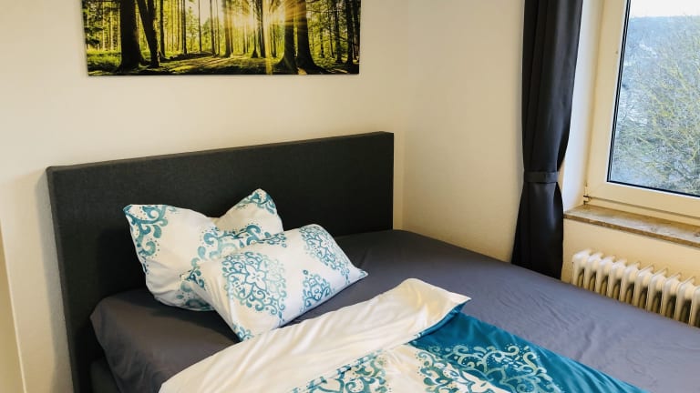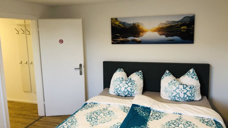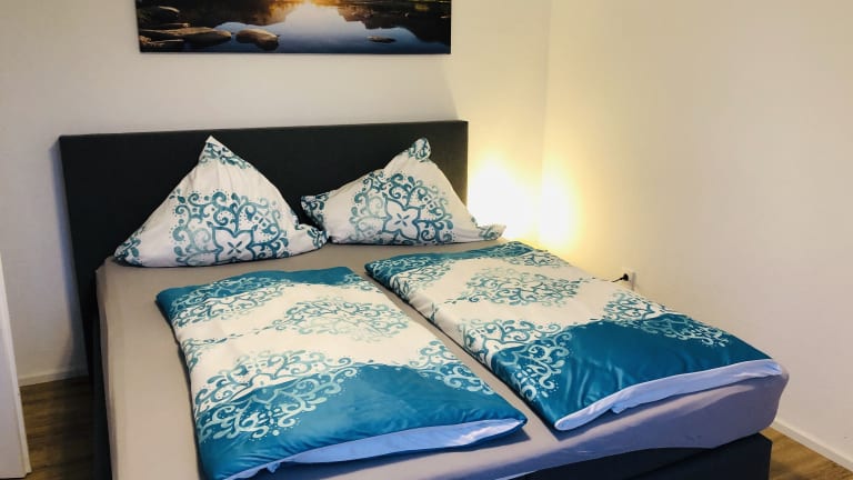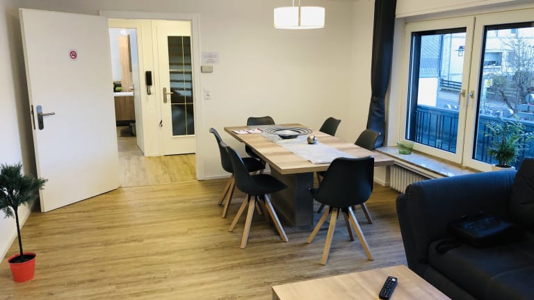 Die Ferienwohnung besteht aus zwei Schlafzimmern, einem Wohnzimmer sowie einem Badezimmer mit Dusche und kostenlosen Pflegeprodukten. Handtücher und Bettwäsche werden zur Verfügung gestellt. Die Küche ist unter anderem mit einem Kühlschrank und einer Kaffeemaschine ausgestattet.