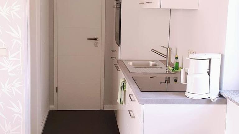 Die Unterkunft beinhaltet eine voll ausgestattete Küche, in der die Gäste ihre Mahlzeiten selbst zubereiten können.