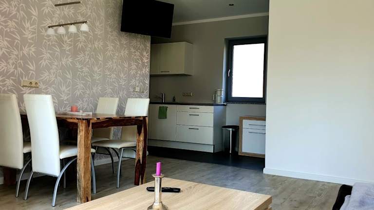 Die Ferienwohnung verfügt über ein Schlafzimmer, ein Wohnzimmer, ein Badezimmer mit Dusche und Haartrockner sowie eine vollständig eingerichtete Küche mit Kühlschrank und Kaffeemaschine. Zur Unterhaltung stehen ein Flachbild-TV mit Satellitenkanälen und ein CD-Player zur Verfügung.