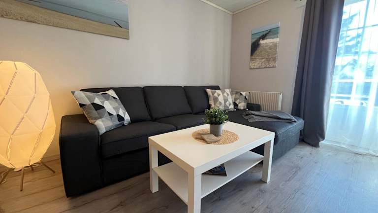 Die Ferienwohnung umfasst 2 Schlafzimmer, ein Wohnzimmer und eine voll ausgestattete Küchenzeile mit Kühlschrank und Kaffeemaschine. Das Badezimmer ist mit einer Dusche sowie einem Haartrockner ausgestattet. Zusätzlich sind ein TV mit Kabelkanälen und ein CD-Player vorhanden.