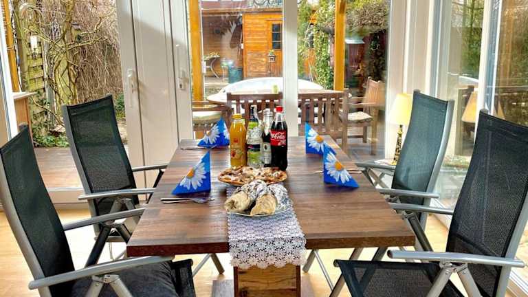 Die FeWo bei Tati - Bungalow besticht durch einen Balkon mit Gartenblick sowie einen saisonalen Aussenpool und eine Gemeinschaftslounge. Die Unterkunft wird von einem privaten Gastgeber geführt und ist nicht für Junggesellen- oder Junggesellinnenabschiede sowie ähnliche Feiern geeignet.