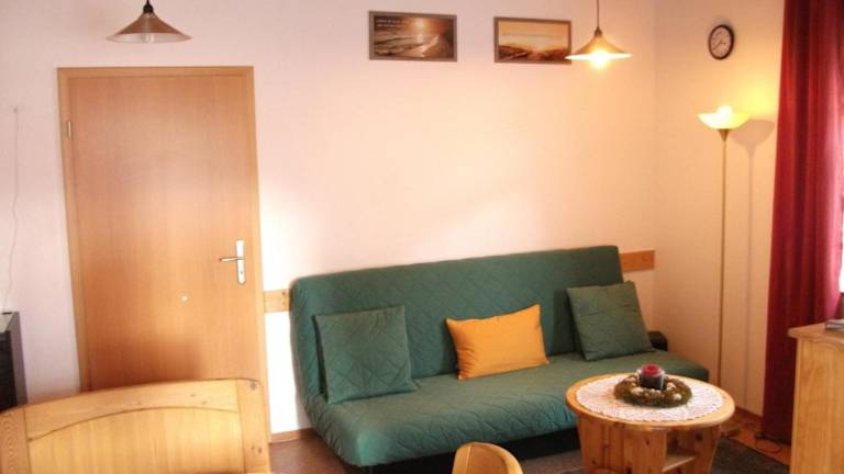Das Apartment in der Fewo Benedikta verfügt über ein gemütliches Schlafzimmer, ein großzügiges Wohnzimmer und eine voll ausgestattete Küche. Hier finden Sie alles, was Sie für einen komfortablen Aufenthalt benötigen, einschließlich eines Kühlschranks und eines Geschirrspülers. Das Badezimmer ist mit einer Dusche ausgestattet und Handtücher sowie Bettwäsche werden Ihnen zur Verfügung gestellt. Von der Terrasse aus haben Sie einen wunderschönen Blick auf den Garten.