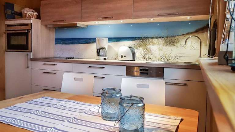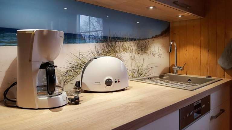 Die Ferienwohnung verfügt über eine Küche, die mit einem Kühlschrank und einem Geschirrspüler ausgestattet ist. Keine weiteren Informationen zu Verpflegungsmöglichkeiten vorhanden.