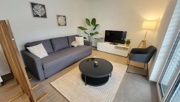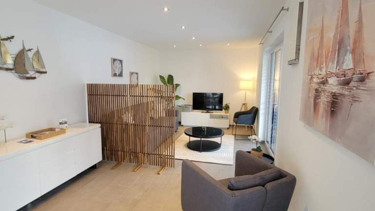 Die Ferienwohnung bietet ein Schlafzimmer, ein Wohnzimmer mit einem Flachbild-TV, eine voll ausgestattete Küche, die mit einem Kühlschrank und einem Geschirrspüler ausgestattet ist, sowie ein Badezimmer mit Dusche. Handtücher und Bettwäsche werden zur Verfügung gestellt. Die Unterkunft ist eine Nichtraucherunterkunft und bietet zudem einen Balkon sowie einen kostenlosen Privatparkplatz, der inbegriffen ist.