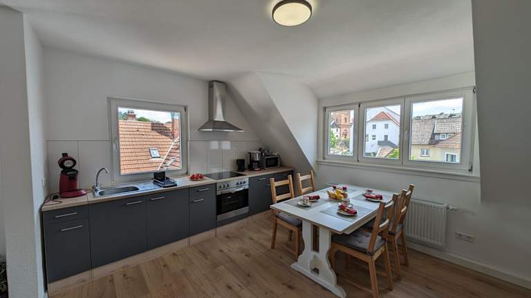 Die Ferienwohnung verfügt über 2 Schlafzimmer, 1 Badezimmer, Bettwäsche sowie Handtücher. Eine voll ausgestattete Küchenzeile und ein Essbereich stehen zur Verfügung. Zudem ist ein Flachbild-TV vorhanden.