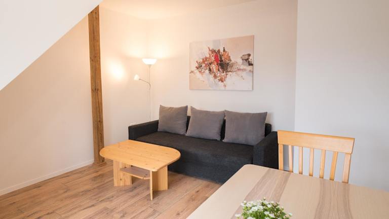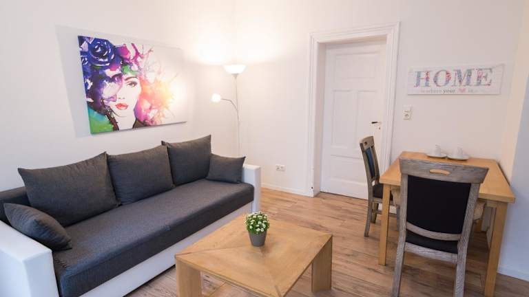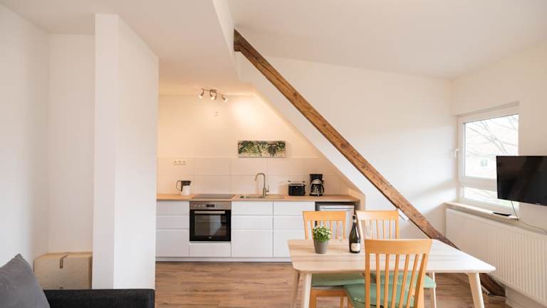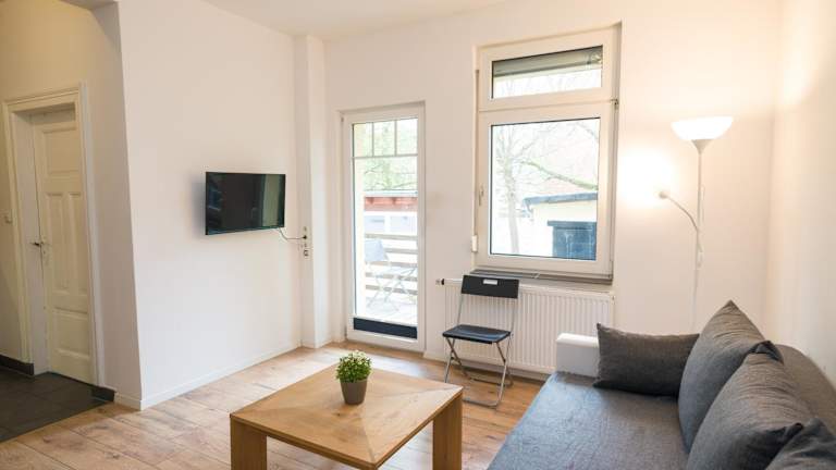 Die Ferienwohnung besteht aus einem Schlafzimmer, einem Wohnzimmer und einer voll ausgestatteten Küche. Zur Ausstattung gehören ein Kühlschrank, eine Kaffeemaschine sowie ein Badezimmer mit Dusche und Haartrockner. Handtücher und Bettwäsche werden bereitgestellt. In dieser Unterkunft stehen Nichtraucherzimmer zur Verfügung.