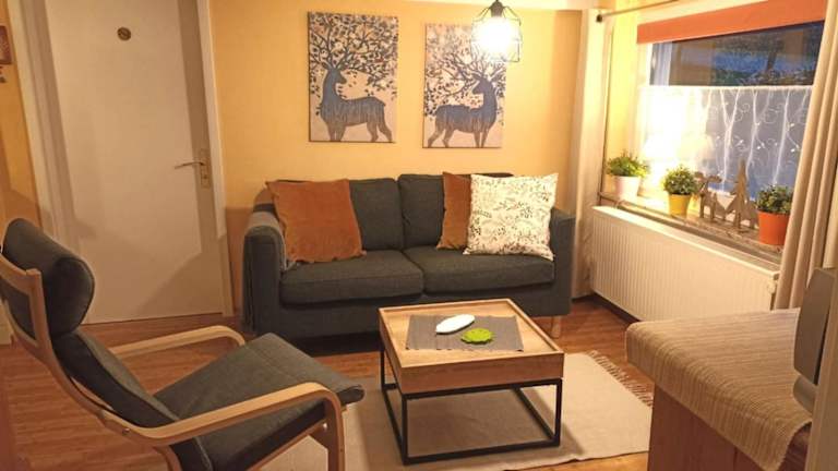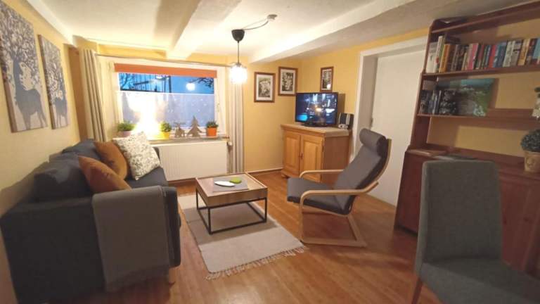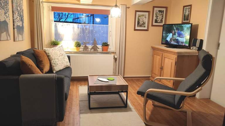 Die Ferienwohnung Holms besteht aus 1 Schlafzimmer, einem Wohnzimmer und einer voll ausgestatteten Küche mit Kühlschrank und Kaffeemaschine. Zudem gibt es ein Badezimmer mit Dusche und Haartrockner. Handtücher und Bettwäsche werden bereitgestellt.