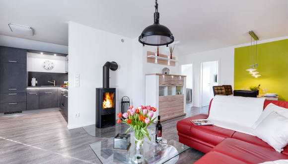 Idyllisch auf der Kapitäns-Halbinsel des Ostseeresort Olpenitz, in der Kapitänsstraße 50a gelegen, bietet unsere 3 Zimmer “Fewo Kapitän James Cook Olpenitz” von allen „Sternhäusern“ hier den mit Abstand schönsten Blick und die beste Lage, einen Anlaufpunkt für Erholungsurlaub auf 77m² in der ersten Etage. Die Fewo Käpt`n James Cook Olpenitz betritt man über eine Außentreppe zum überdachten ersten Balkon (10m²), dieser ermöglicht auch bei Regen, den Aufenthalt an der frischen Luft. Der Eingangsbereich führt vorbei an einem schönen Badezimmer, dies lässt Wellnessherzen höher schlagen, denn es verfügt über eine XXL Dusche und über eine Sauna (Infrarotkabine) mit Farblichttherapie. Auf der anderen Seite folgen zwei geschmackvoll eingerichtete Schlafzimmer, mit Platz für vier Erwachsene und einen traumhaften Blick auf`s Wasser. Das Masterbedroom verfügt über ein Wasserbett mit mittlerer Beruhigung (1,80 x 2,20), während ein Boxspringbett (1,80 x 2,00) im zweiten Schlafzimmer, beide mit zusätzlichem Smart TV, auf Sie wartet. Eine fünfte Person ist auf Anfrage möglich, die Schlafgelegenheit wäre auf dem großen Sofa welches eine Bettfunktion besitzt. Im Fokus steht aber der perfekt umgesetzte lichtdurchflutete Wohn- und Essbereich mit Holz befeuertem Kaminofen, bodentiefen Fenstern, durch die sich der Wohnbereich mit der Natur verbindet. Die Integration der offenen Küche mit hervorragender Ausstattung und funktionalem Design, steht dem gemütlichen Beisammensein auch beim zubereiten von allerlei Köstlichkeiten nichts im Wege. Der runde Kaminofen zwischen Wohnzimmer und Essbereich verleiht dem Raum eine besondere Atmosphäre. Dem faszinierenden Flammenspiel kann man durch das große Panoramaglas sowohl vom Sofa als auch vom Essbereich zuschauen. Vor allem in den kalten Wintertagen verbreitet der Ofen ein kuscheliges Wohlfühlambiente mit angenehmer Wärme. Den großzügigen zweiten Balkon (Südbalkon14m²) betritt man über den Wohnbereich, hier können es sich unsere Gäste auf einer bequemem Bestuhlung gemütlich machen und die Sonne so zu jeder Tageszeit genießen oder sich etwas leckeres auf dem Elektrogrill zubereiten. Das ist Urlaub in einer Ferienwohnung im Ostseeresort Olpenitz. Bei dieser Ferienwohnung im Ostseeresort Olpenitz sind spektakuläre Sonnenlichtspiele durch die zwei Balkone in Süd- und Westausrichtung zu erwarten. Der Einrichtungsstil entspricht der exklusiven Lage der Ferienwohnung: Klare Farben und Formen, sowie der Einsatz natürlicher Materialien, versprechen Ruhe und Rückzug, während einzelne Farbakzente für erfrischende Leichtigkeit sorgen. Die gesamte Ferienwohnung lässt sich über die Fußbodenheizung einfach temperieren und bietet dank des Kaminofens und der Sauna das ganze Jahr über eine angenehme Wärme und eine gemütlich-wohlige Atmosphäre. Für Unterhaltung sorgen im Wohnbereich ein 42 Zoll Ultra HD Smart TV, Musik-Anlage mit WLAN und Bluetooth-Empfänger, Bücher sowie eine Spielesammlung. Darüber hinaus verfügt die Wohnung über einen kostenlosen Pkw-Stellplatz mit E-Ladesäule, für ein Elektroauto direkt am Haus. Ein Kinderreisebett und ein Kinderhochstuhl stehen für unsere kleinen Gäste bereit. Bettwäsche/ Handtücher können selbst mitgebracht oder aber in Form von Wäschepaketen (ca.€ 21,-/Paket) von unserer Agentur gemietet werden. Die Betten wären dann bei Anreise bezogen.
