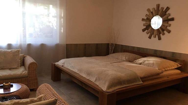 Die Ferienwohnung besteht aus einem Schlafzimmer und ist mit einem Flachbild-TV mit Satellitenkanälen sowie einer gut ausgestatteten Küche ausgestattet. Diese verfügt über einen Kühlschrank und einen Ofen. Es gibt ein Badezimmer mit Dusche sowie Handtücher und Bettwäsche, die bereitgestellt werden. Die Unterkunft ist mit schallisolierten Zimmern ausgestattet und bietet allergikerfreundliche Optionen.