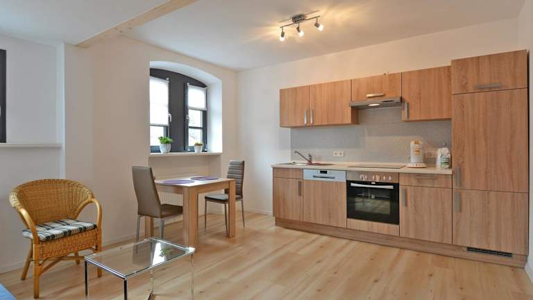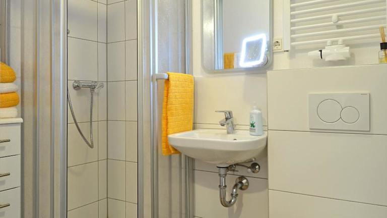 Die Ferienwohnung FeWo Kröger bietet eine gut ausgestattete Küchenzeile mit einem Kühlschrank, Geschirrspüler und Ofen. Zudem steht den Gästen ein Badezimmer mit Dusche und Haartrockner zur Verfügung. Die Zimmer bieten Satelliten Flachbild-TV und bieten Stadtblick.