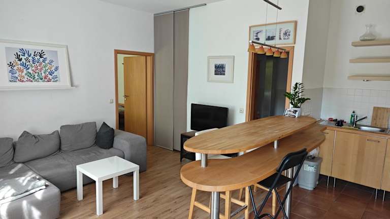 Die Ferienwohnung verfügt über ein Schlafzimmer und ist ausgestattet mit einem Wohnzimmer, in dem ein Flachbild-TV mit Satellitenkanälen zur Verfügung steht. Eine voll ausgestattete Küche mit Kühlschrank und Geschirrspüler sowie ein Badezimmer mit Dusche sind ebenfalls vorhanden. Handtücher und Bettwäsche werden bereitgestellt.