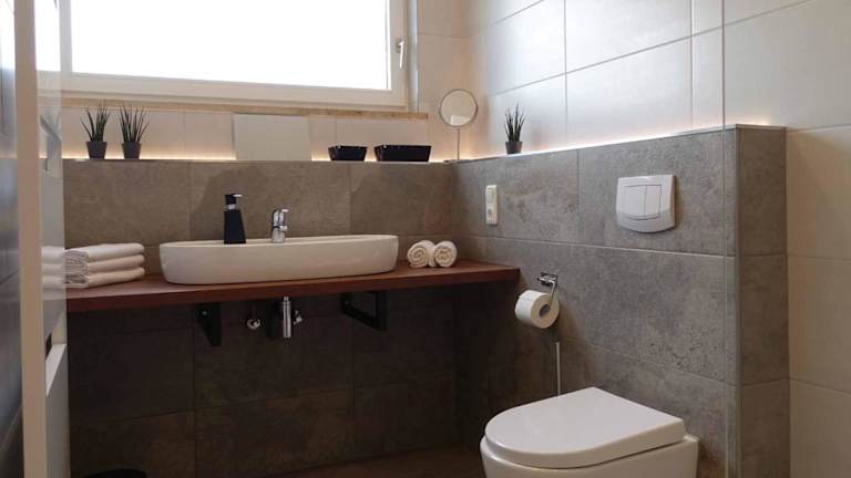 Alle Wohneinheiten der Fewo Lehner verfügen über eine voll ausgestattete Küche, in der die Gäste ihre eigenen Mahlzeiten zubereiten können. Ein eigenes Badezimmer mit Dusche und Haartrockner ist ebenfalls vorhanden.