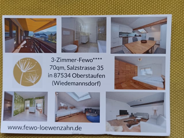 Das FeWo Löwenzahn liegt in Oberstaufen/Wiedemannsdorf und bietet einen herrlichen Blick auf die umliegenden Berge. Das Casino Bregenz ist etwa 44 km entfernt und die BigBOX Allgäu erreichen Sie nach 32 km. Wander- und Skimöglichkeiten befinden sich in der unmittelbaren Umgebung des Apartments. Der Bahnhof Bregenz ist 44 km entfernt und der nächstgelegene Flughafen Friedrichshafen liegt 66 km entfernt.