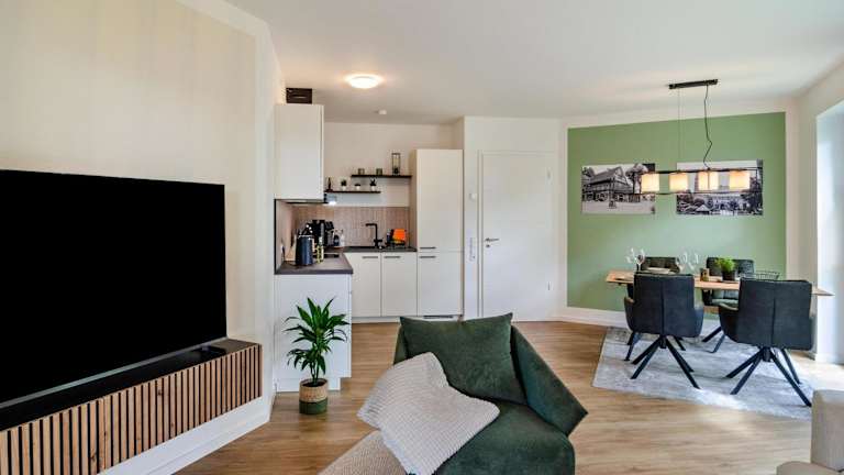 Die Fewo Luisa bietet ein Schlafzimmer, eine Küche mit Kühlschrank und Geschirrspüler sowie ein Badezimmer mit Dusche und kostenlosen Pflegeprodukten. Handtücher und Bettwäsche werden bereitgestellt. Eine Waschmaschine steht ebenfalls zur Verfügung.