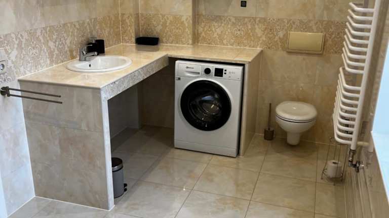Die Ferienwohnung umfasst 3 Schlafzimmer, ein Wohnzimmer und eine gut ausgestattete Küche mit einem Kühlschrank und einem Geschirrspüler. Handtücher und Bettwäsche werden bereitgestellt.