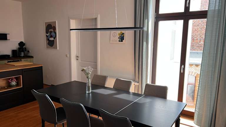 Die FeWo Luise bietet Übernachtungsmöglichkeiten in einer geräumigen Wohnung mit 4 Zimmern und einem Balkon. Die Unterkunft befindet sich in einem Gebäude aus dem Jahr 1900 und bietet Annehmlichkeiten wie kostenloses Wifi und einen Flachbild-TV.