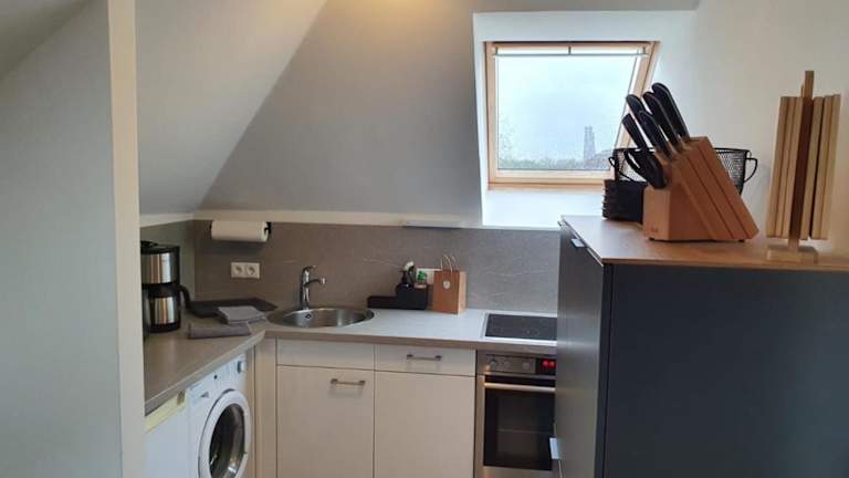 Die Ferienwohnung umfasst zwei Schlafzimmer, ein Wohnzimmer und ein Badezimmer mit Badewanne. Zudem ist eine gut ausgestattete Küche vorhanden, die mit einem Kühlschrank und einem Geschirrspüler ausgestattet ist. Ein Flachbild-TV ist ebenfalls vorhanden, und Handtücher sowie Bettwäsche werden bereitgestellt.