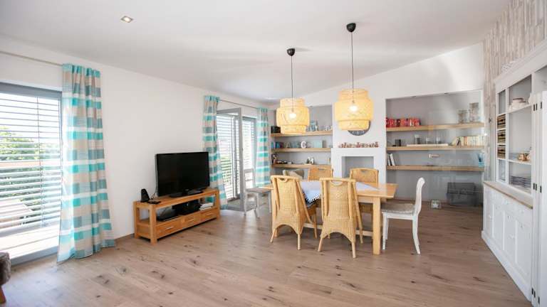 Die Ferienwohnung bietet einen Balkon mit Poolblick, zwei Schlafzimmer, ein Wohnzimmer sowie eine gut ausgestattete Küche. Zudem stehen ein Satelliten Flachbild-TV und ein Badezimmer mit Dusche und Badewanne zur Verfügung. Handtücher und Bettwäsche werden bereitgestellt.