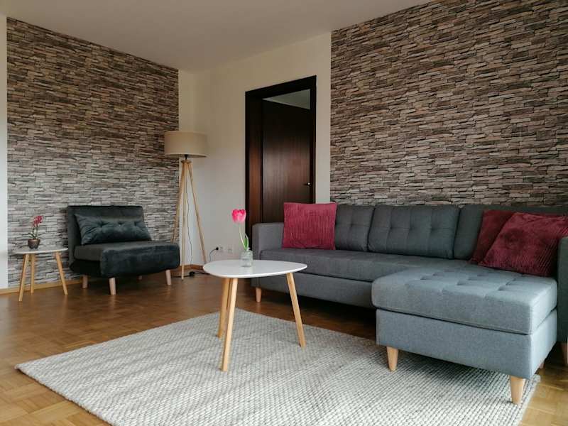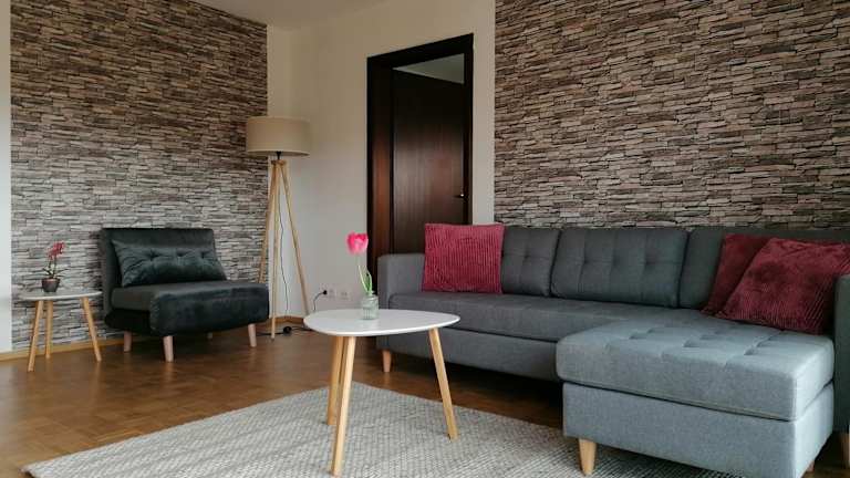 Die Ferienwohnung verfügt über eine Terrasse mit Stadtblick, ein Schlafzimmer, ein Wohnzimmer mit einem Satelliten Flachbild-TV sowie eine gut ausgestattete Küche. Ein Badezimmer mit Dusche und Badewanne ist ebenfalls vorhanden. Handtücher und Bettwäsche werden bereitgestellt.