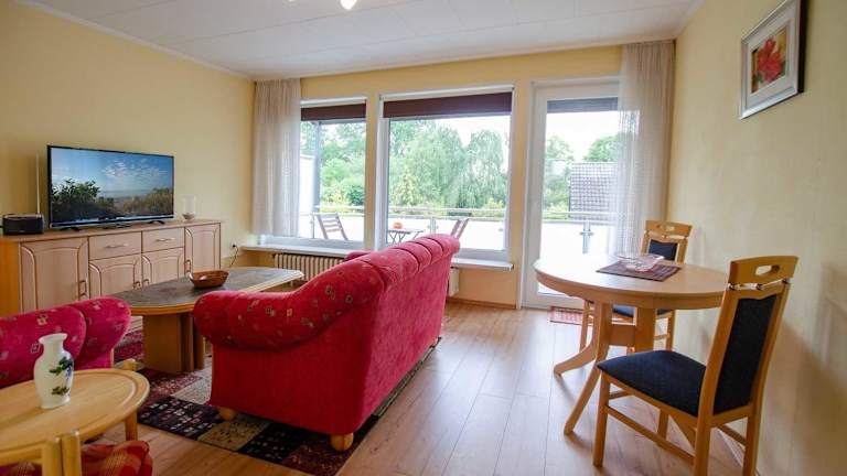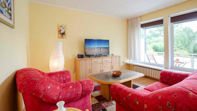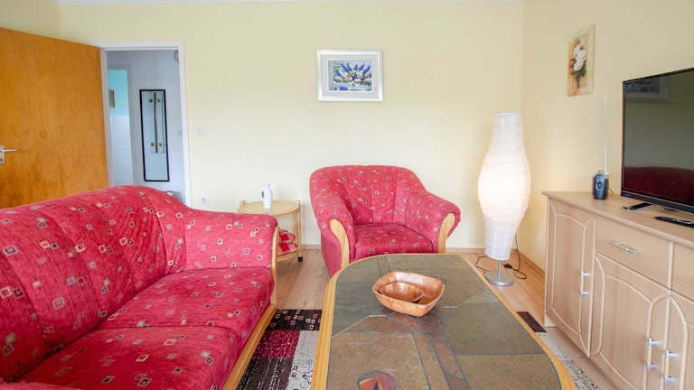 Die Wohnung ist mit einem Flachbild-TV eingerichtet und bietet einen heimeligen Rahmen für entspannte Ferien. Die Ausstattung ermöglicht eine flexible und unabhängige Übernachtungsmöglichkeit.