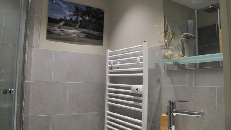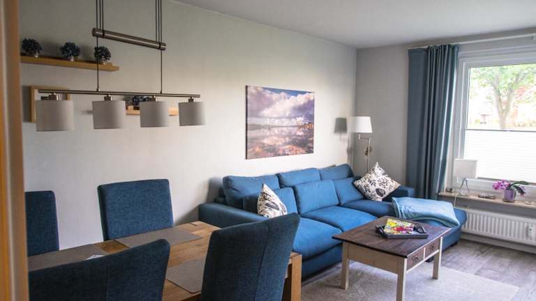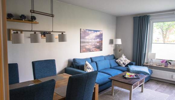 Die Ferienwohnung verfügt über ein Schlafzimmer, ein Badezimmer mit Dusche, ein Wohnzimmer, einen Essbereich sowie eine gut ausgestattete Küche mit Kühlschrank, Geschirrspüler und Ofen. Zur Ausstattung gehört auch ein Flachbild-TV mit Satellitenkanälen, ein Blu-ray-Player, ein DVD-Player sowie ein CD-Player.