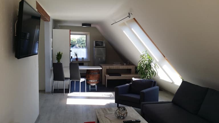 Die FeWo Oberdeck Ueckermünde umfasst eine Ferienwohnung mit einer Terrasse, kostenloser Privatparkiermöglichkeit und kostenlosem Wifi. Die Unterkunft bietet eine Nichtraucherumgebung und ist gut ausgestattet für einen angenehmen Aufenthalt. Es werden keine Hochzeitsfeiern oder ähnliche Veranstaltungen erlaubt.