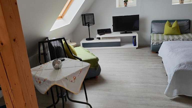 Die Ferienwohnung bietet ein Schlafzimmer und eine Küchenzeile, die mit einem Kühlschrank und einem Geschirrspüler ausgestattet ist. Zudem verfügen die Räume über einen Flachbild-TV, einen Sitzbereich sowie ein Bad mit Dusche. Handtücher und Bettwäsche werden bereitgestellt. Allergikerfreundliche Zimmer sind verfügbar.