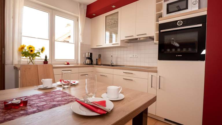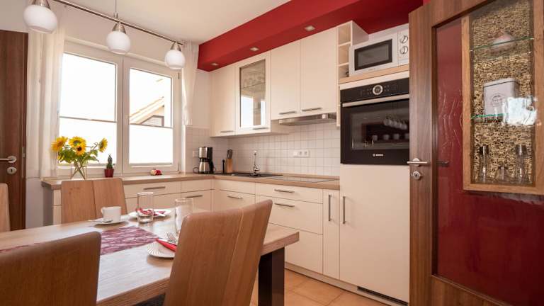 Die Ferienwohnung verfügt über einen Balkon, eine Kaffeemaschine, eine voll ausgestattete Küche mit Kühlschrank, Geschirrspüler und Ofen, zwei Schlafzimmer, ein Badezimmer mit Dusche und Badewanne sowie ein Wohnzimmer mit Sitz- und Essbereich. Handtücher und Bettwäsche werden bereitgestellt. Zur Verfügung steht eine Terrasse sowie allergikerfreundliche Zimmer.