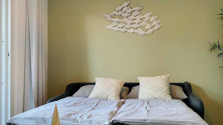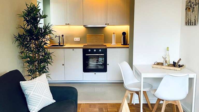 Die Ferienwohnung umfasst ein Schlafzimmer, ein Wohnzimmer, einen Flachbild-TV sowie eine gut ausgestattete Küche mit Kühlschrank und Geschirrspüler. Des Weiteren steht ein Badezimmer mit Dusche zur Verfügung. Handtücher und Bettwäsche werden bereitgestellt.