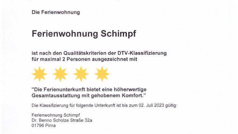 Die Fewo Schimpf Pirna ist eine gemütliche Ferienwohnung, die über einen Garten mit Grillmöglichkeiten verfügt. Kostenloses Wifi ist in der gesamten Unterkunft vorhanden. Ein privater Parkplatz ist ebenfalls inbegriffen. Die Unterkunft wird von einem privaten Gastgeber geführt und ist für Nichtraucher ausgelegt.