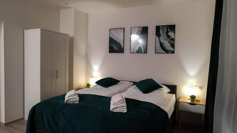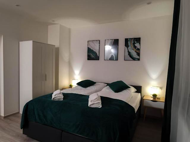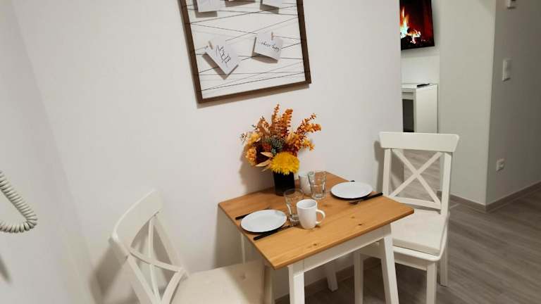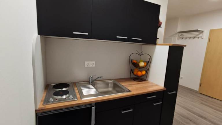 Die Ferienwohnung besteht aus einem Schlafzimmer, einer Küchenzeile und einem Badezimmer. Ausserdem gibt es einen Flachbild-TV. Ein Babybett kann auf Anfrage für Kinder bis 3 Jahre bereitgestellt werden.