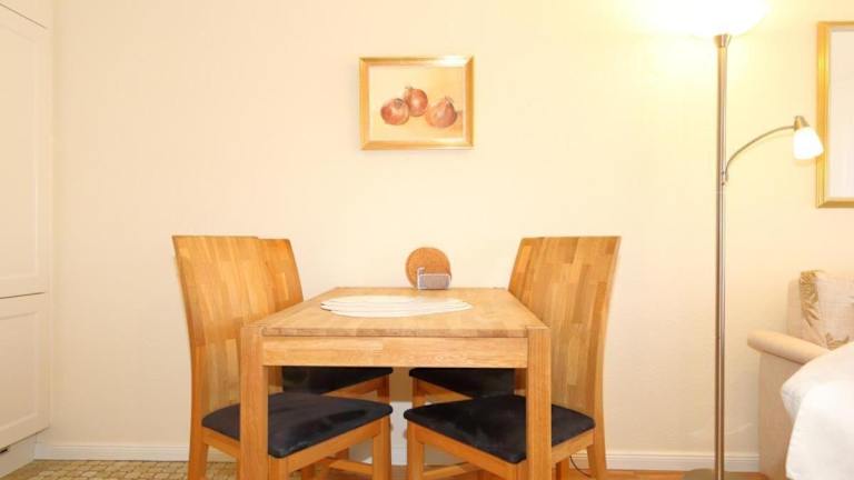 Die Ferienwohnung ist mit einer gut ausgestatteten Küchenzeile versehen, in der eine Zubereitung von Mahlzeiten möglich ist. Es sind keine Verpflegungsoptionen im Hotel vorhanden.