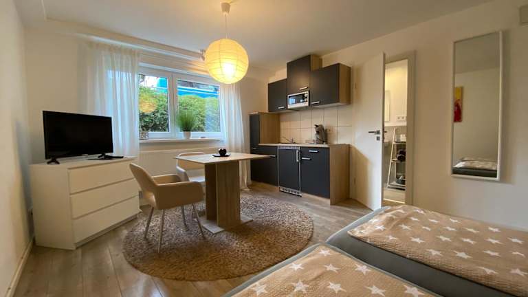 Die Unterkunft befindet sich in einem Wohngebiet in Speyer, welches durch eine ruhige Atmosphäre besticht. Die Umgebung bietet einige Freizeitmöglichkeiten und ist in der Nähe des Stadtzentrums.