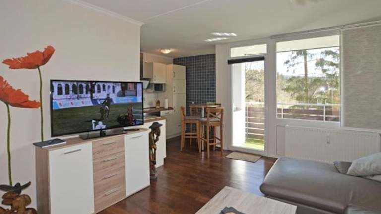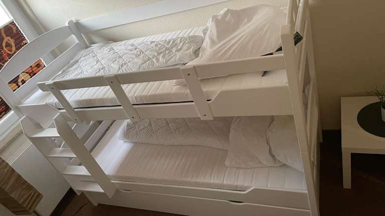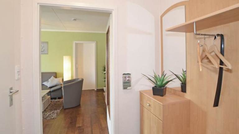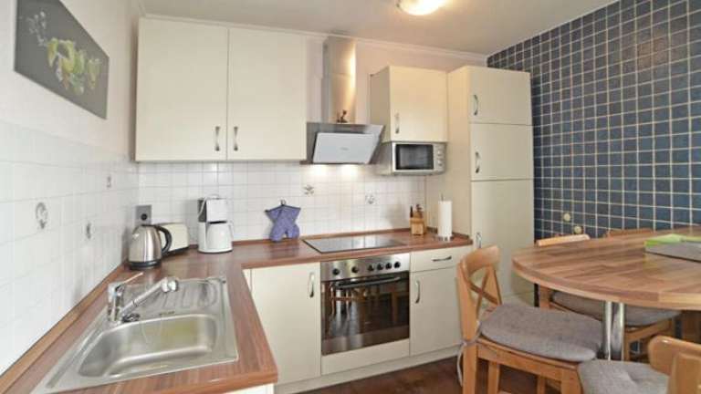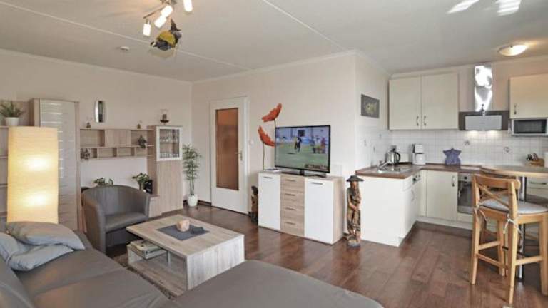 Die Ferienwohnung umfasst zwei Schlafzimmer, ein Wohnzimmer mit Flachbild-TV sowie eine gut ausgestattete Küche mit Kühlschrank und Geschirrspüler. Das Badezimmer ist mit einer Dusche ausgestattet. Für zusätzlichen Komfort können Handtücher und Bettwäsche gegen Aufpreis bereitgestellt werden.