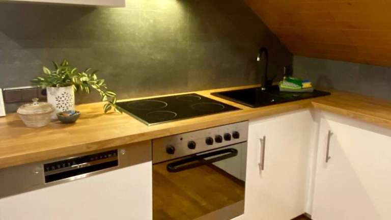 Die Ferienwohnung besteht aus einem Schlafzimmer, einer Küche, die mit einem Kühlschrank und einem Geschirrspüler ausgestattet ist, sowie einem Badezimmer mit Dusche, Haartrockner und Waschmaschine. Handtücher und Bettwäsche werden zur Verfügung gestellt. Die Unterkunft bietet zudem eine Terrasse, Gartenmöbel und einen kostenlosen Privatparkplatz.