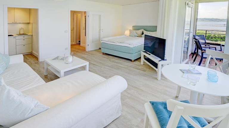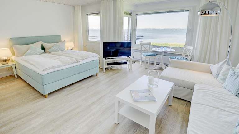 fewo1846 - Fjordview ist ein komfortables Studioapartment mit Balkon und Meerblick. Die Unterkunft bietet einen heimeligen Rahmen für einen angenehmen Aufenthalt.