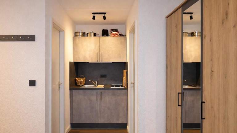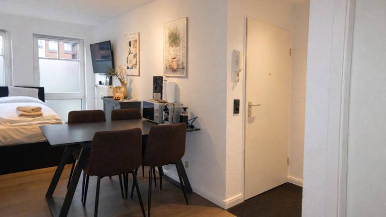 fewo1846 - Studio Sandberg bietet eine praktische Ferienwohnung im Erdgeschoss, ideal gelegen für Gäste, die die Hochschule in der Nähe besuchen möchten.