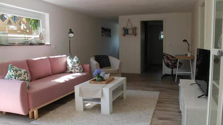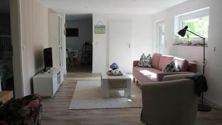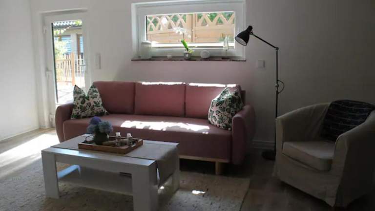 Die Ferienwohnung beinhaltet 1 Schlafzimmer, ein Wohnzimmer sowie ein Badezimmer mit Dusche. Die gut ausgestattete Küche ist mit einem Kühlschrank und einem Geschirrspüler eingerichtet. Eine Terrasse mit Gartenblick lädt zum Verweilen ein. Zusätzliche Bequemlichkeit bieten gegen Aufpreis Handtücher und Bettwäsche.