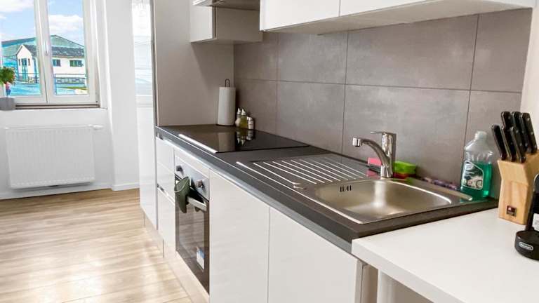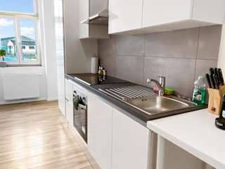 Die Wohneinheiten sind mit einer Küche ausgestattet, die Kühlschrank, Geschirrspüler, Ofen, Herdplatte, Toaster, Kaffeemaschine und Wasserkocher umfasst, wodurch die Gäste die Möglichkeit haben, ihre eigenen Mahlzeiten zuzubereiten.