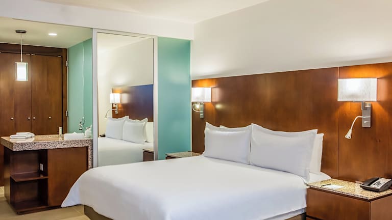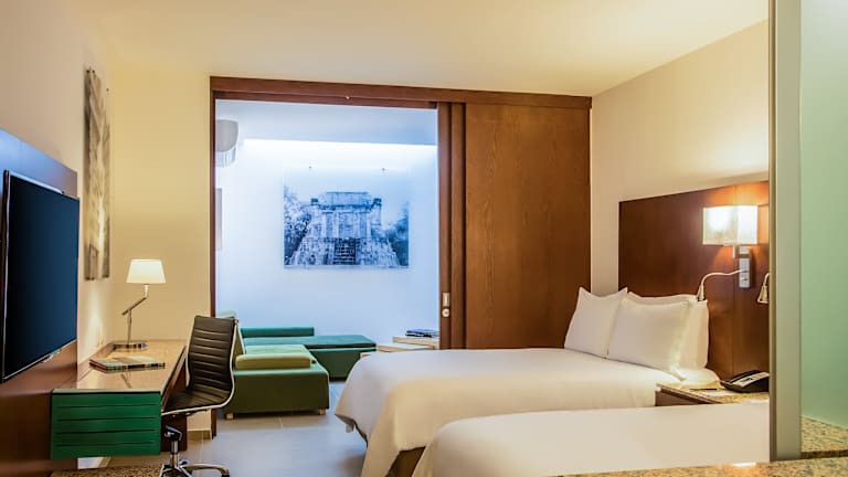 Die klimatisierten Zimmer im Hotel Fiesta Inn Playa del Carmen sind komfortabel eingerichtet und verfügen über ein eigenes Badezimmer mit Dusche. Zur Ausstattung gehören auch ein TV, kostenfreie Pflegeprodukte und kostenfreies WLAN. Auf Anfrage steht Ihnen gegen Aufpreis auch ein Flughafentransfer zur Verfügung.