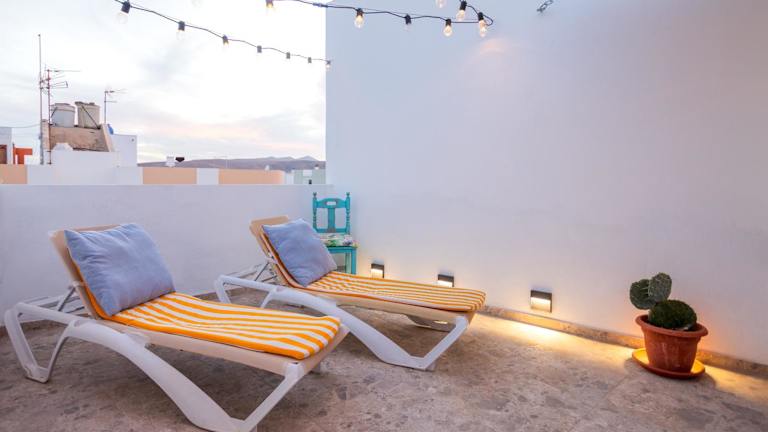 Die Unterkunft Fiesta y Siesta bietet einen schönen Meerblick sowie Zugang zu einem Whirlpool. Es handelt sich um eine Nichtraucherunterkunft, die Familienzimmer sowie eine Parkiermöglichkeit bietet. Die Unterkunft hat eine Terrasse und ist am Strand gelegen.
