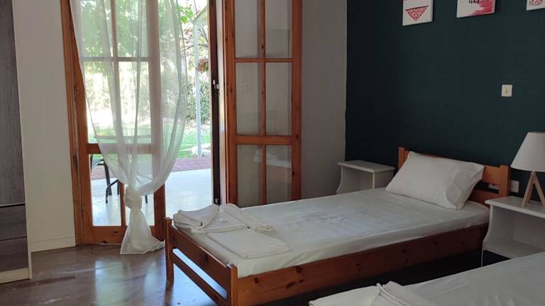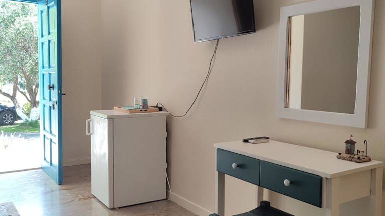 Die klimatisierten Zimmer sind mit einem TV, einem Kühlschrank und einer Terrasse ausgestattet, die einen Blick auf den Garten und die Berge bietet. Ein eigenes Bad mit Dusche ist in jedem Zimmer vorhanden. Einige Unterkünfte gewähren zudem Aussicht auf das Schloss von Riniasa. Die Zimmer sind schallisoliert und bieten Bequemlichkeiten wie eine Klimaanlage und Gartenmöbel.