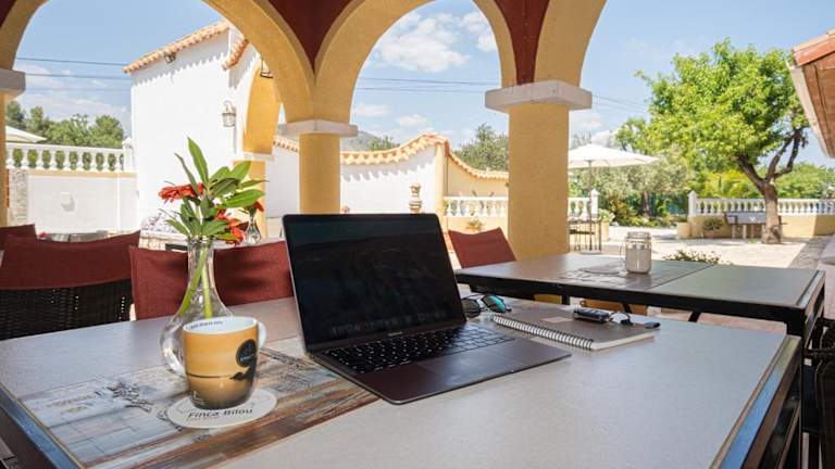 Die Villa der Finca Bilou bietet geräumige und komfortable Zimmer mit Balkon und Bergblick. Das Wohnzimmer verfügt über einen Flachbild-Sat-TV, und die Küche ist komplett ausgestattet. Es gibt insgesamt 5 Badezimmer mit Bidet und Dusche. Handtücher und Bettwäsche werden in der Villa gestellt.