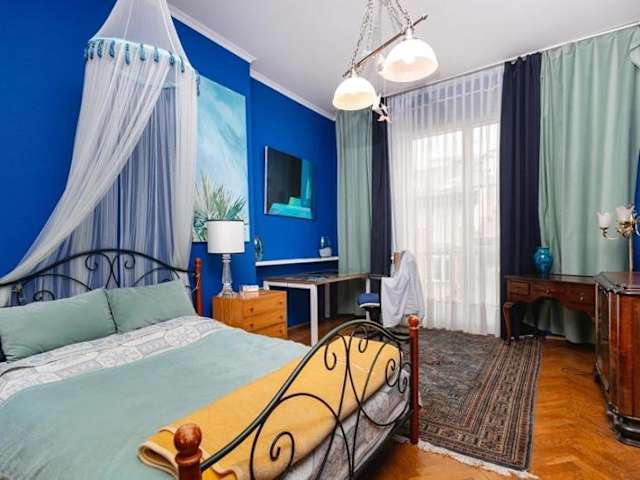 Das Fine Art Luxury Apartment erstreckt sich über 110 m2 und bietet viel Platz für einen angenehmen Aufenthalt. Die Wohnung ist modern eingerichtet und verfügt über einen Balkon. Es besteht die Möglichkeit, einen Privatparkplatz gegen Aufpreis zu arrangieren.