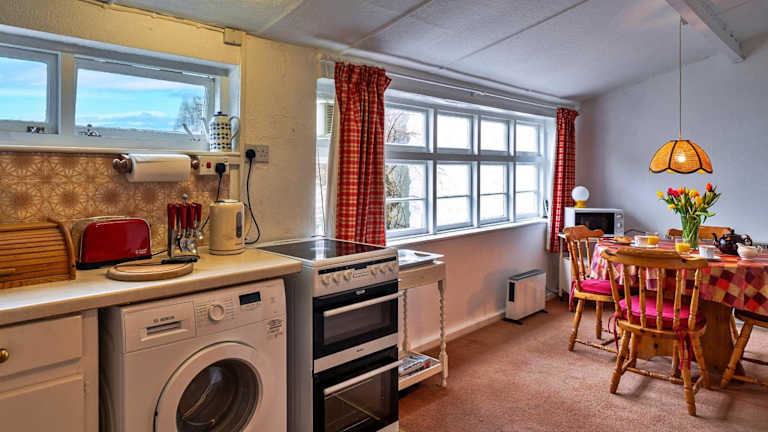 Das Ferienhaus umfasst 2 Schlafzimmer sowie ein Badezimmer, das sowohl eine Dusche als auch eine Badewanne bietet. Ein gemütlicher Sitzbereich und eine voll ausgestattete Küche mit einem Ofen sorgen für eine angenehme Selbstversorgung. Zur Unterhaltung steht ein TV zur Verfügung.